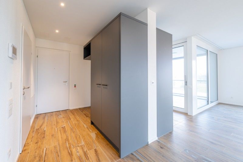 Die beiden Mehrfamilienhäuser mit je 14 Wohneinheiten auf vier Etagen wurden an der Strasse Im Riet erstellt, wodurch Sie von den Vorteilen der sehr guten Verkehrserschliessung und doch einer ruhigen Wohnlage mit wenig Verkehr profitieren.Sämtliche Wohneinheiten sind mit einem hohen Ausbaustandart ausgestattet:-ABB-free@home-eigene Waschmaschine und Tumbler in der Wohnung-Rollläden (elektrisch)-Senkrechtmarkisen für die Loggias (elektrisch)-LED-Einbauspots in Küche und Bad-Komfortlüftung in allen Wohneinheiten-Küche mit V-Zug-Geräten-Video-Gegensprechanlage in der Wohnung-Altpapier Recycling-Station im Erdgeschoss-Paketbox zum empfangen/versenden von Paketen-Wäsche Abgabe-/Annahmestelle-5 E-Ladestationen in der Tiefgarage-Photovoltaikanlage auf dem FlachdachEin Kellerabteil im Untergeschoss ist im Mietzins inbegriffen. Der gemeinschaftlich genutzte Veloraum und der Trockenraum befindet sich im Erdgeschoss.Im Mietpreis ist kein Parkplatz inbegriffen. Aussen-Parkplätze können für CHF 50.00 pro Monat und Platz dazugemietet werden.